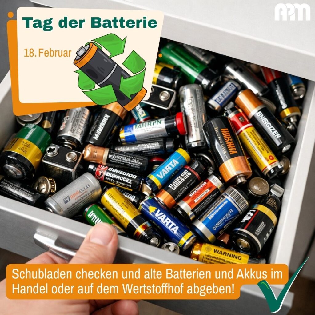 Zum Tag der Batterie am 18. Februar erinnert die APM GmbH daran: Alte Batterien und Akkus gehören nicht in den Hausmüll.